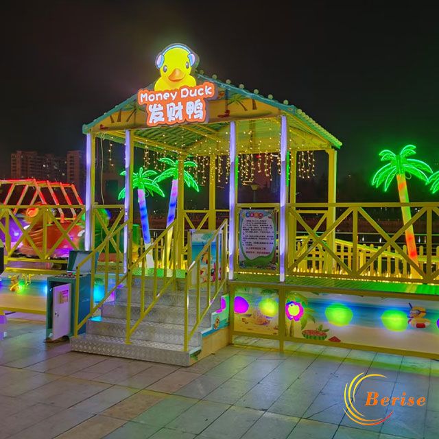 Duck coaster, it is one cute and lovely children games, belong to coaster series products, flexible tracks with RGB lights, make the track look more beautiful when working, there are much wheat lights in the playground central, the whole equipment looks fantastic at night !